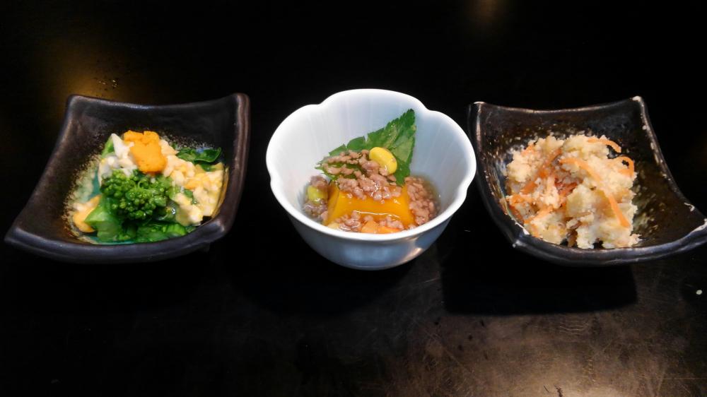 菜の花のウニソースあえ。カボチャのあんかけ。おから。さぁどれにします(笑)