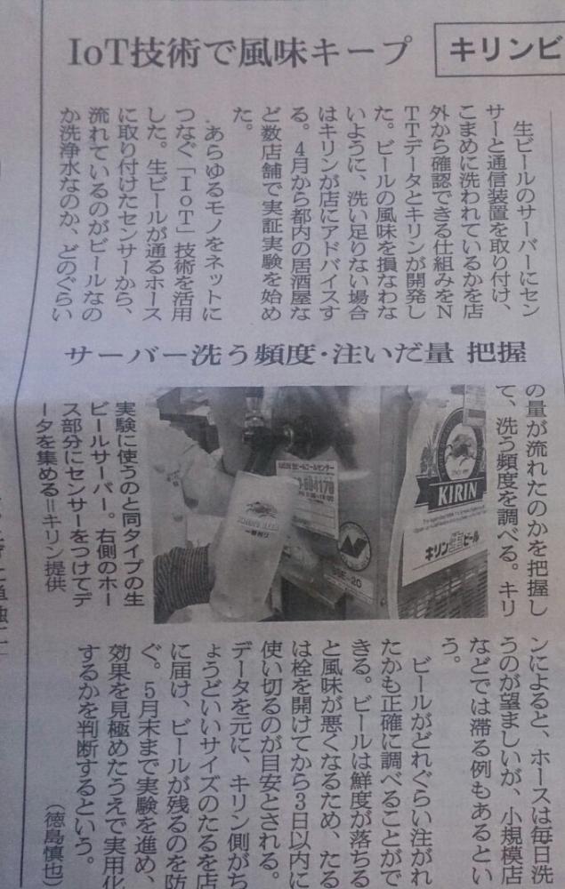 2017年04月13日(木) 新聞 キリンビールが 生ビールの管理に出た。各店に任せておけなくなったんでしょうね。居酒屋点はマスターが美味しいビールが飲みたいのでしっかり管理してますよ(笑)点は2日で使いきるように心掛けています 15Lと 7Lの樽を 入客状況で使い分けています。唯一のおすすめメニューが生ビールなのです(^_^;) TOPへ戻る 一覧へ戻る