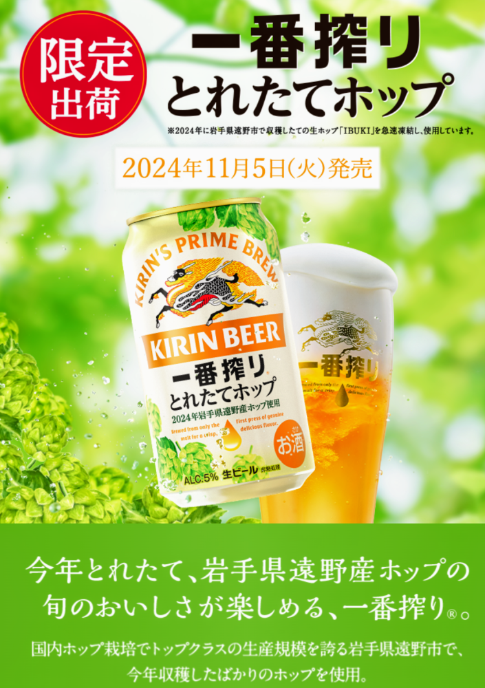 キリンとれたてホップ生ビール本日より販売開始です